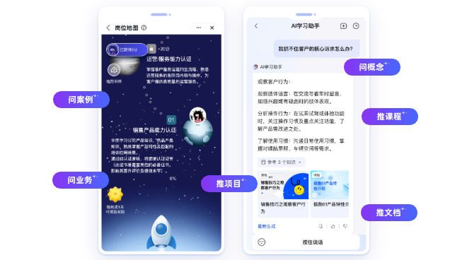- 在岗员工明晰岗位晋升路径,AI 答疑提高 20% 学习效率